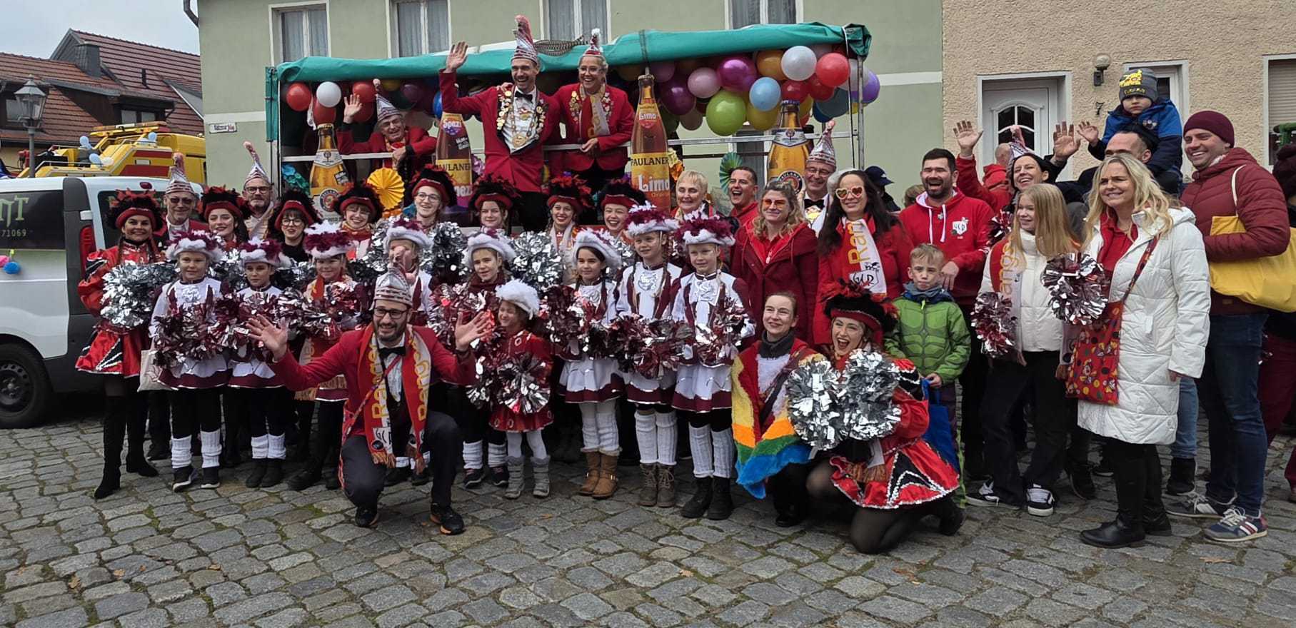 Pünktlich um 13:11 Uhr ist dann der Umzug los gerollt Richtung Rathaus. Wir konnten wieder in viele glückliche Kinder- und auch Erwachsenen-Augen schauen. Wir wurde für unsere schönen Kostüme der Garden gelobt. Denn: Im Gegensatz zu vielen anderen Vereinen haben wir keinen großen Lkw, auf dem wir stehen, sondern nur einen kleinen Anhänger. Das bedeutet, dass die meisten von uns zu Fuß am Umzug teilnehmen. Dadurch sind unsere Kostüme weithin sichtbar.
